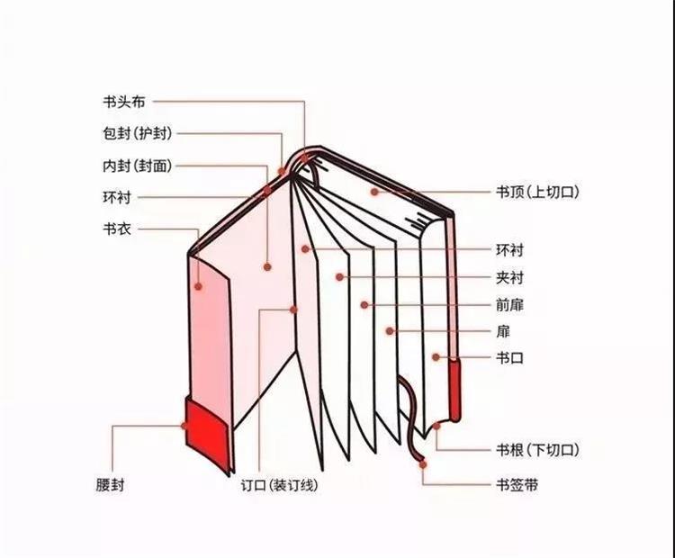 设计一本书时,首先要决定开本,原则上要选择适合内容题材的纸张种类,并且以最经济合理的计算来裁剪,其次,还要充分考虑印刷机工作和裁切所需要的余量。书籍外观构成元素外观上主要构成书籍的各部分包括:书脚、书根、书背、书签等。观察身边的书籍,会发现书籍的样式包罗万象。书籍各个部位名称