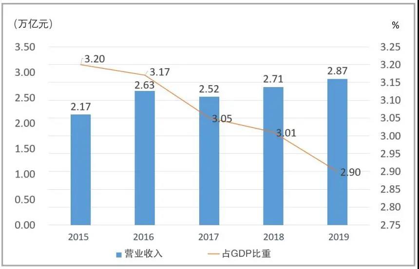 图1 2015~2019年全国出版业营业收入及占全国GDP比重