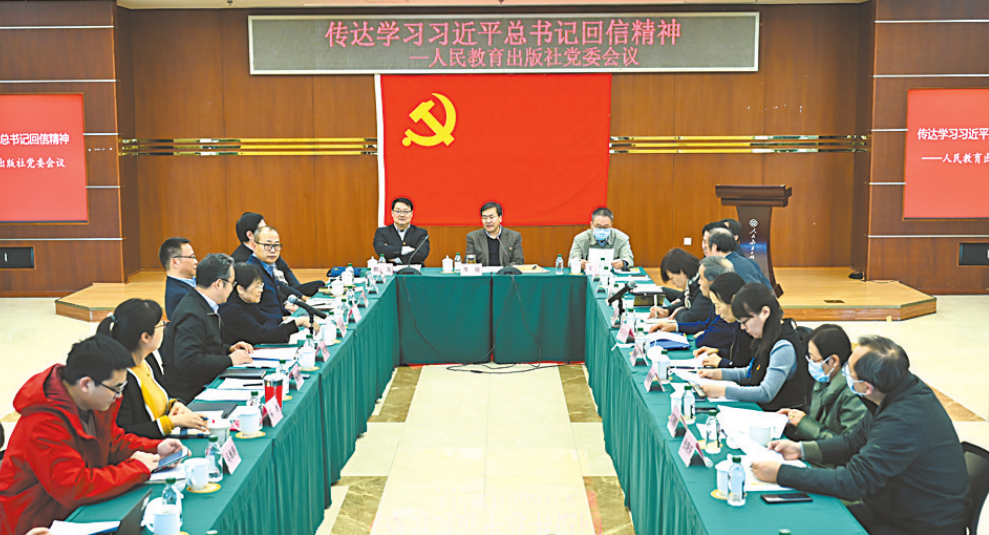 11月30日,人民教育出版社党委召开会议,传达学习习近平总书记回信精神。人教社 供图
