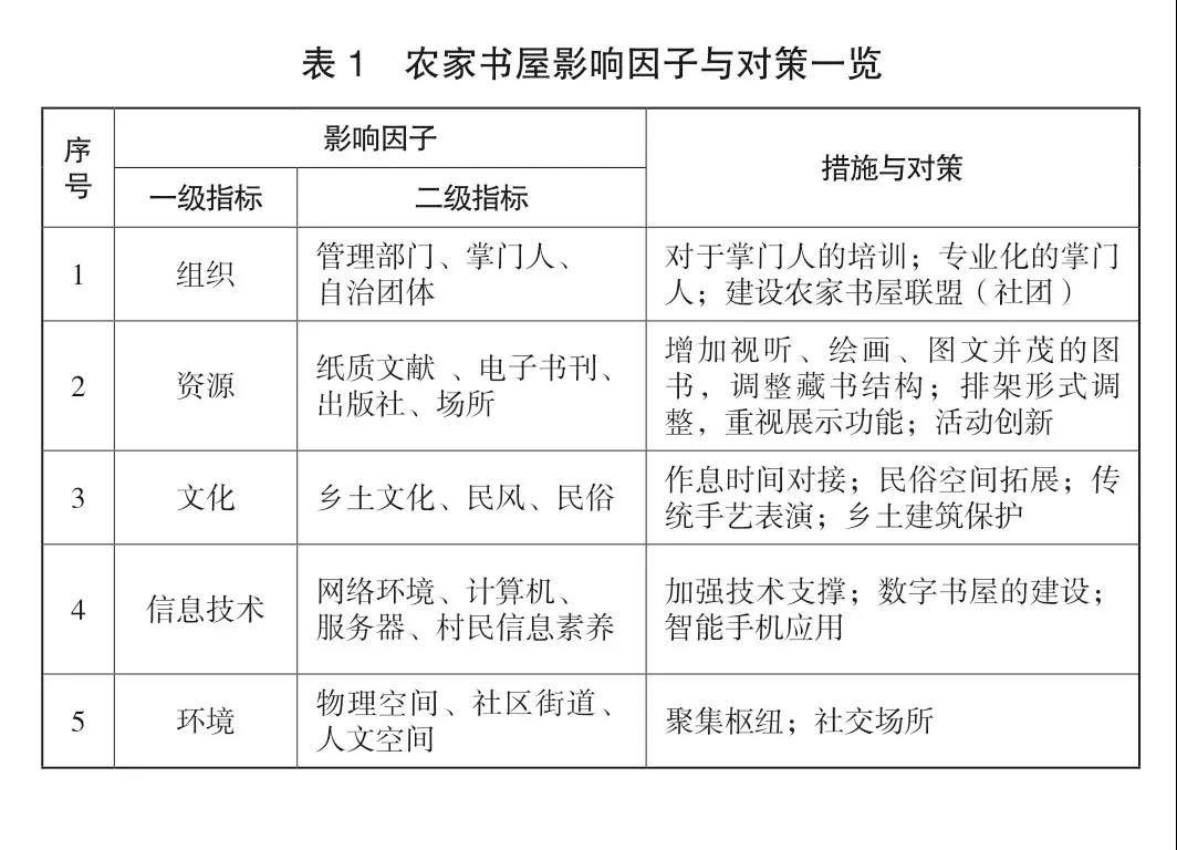 我国农家书屋的发展经历了不同的发展模式。而所谓模式,是在相关影响因子下的关联(或拓展)与路径组合。因此,我们有必要进一步探讨影响农家书屋建设模式的因素(因子)有哪些。依据调研,我们把影响因素初步归纳为组织管理、文献资源、乡村文化、信息技术和环境。