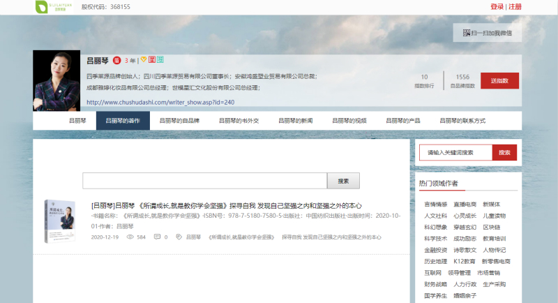 近日,吕丽琴女士受邀入驻诚信书作者平台,并且开通了联系方式,从而有效地提高了其全网的个人品牌影响力。