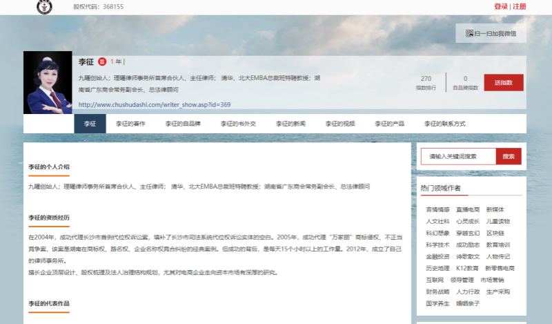 出书大师网小编认为,此次李征老师(雪竹老师)受邀入驻诚信书作者平台,是她看好平台在自品牌发展助力上的良好作用。同时,更是平台为李征老师搭建法律事业品牌发展渠道,提升李老师法律品牌影响力的有力举措。李老师的入驻,不仅可以为她的法律事业注入丰富的流量加持,而且还可以为李老师对接更为精准的法律客户群体。在对接目标客户的前提下,让李老师可以开启自品牌发展的新篇章。