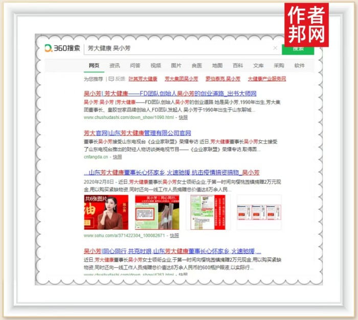 翌日,通过媒体效应的传播与积累,吴小芳女士的品牌效应得到了直接而有效的宣传,在360、搜狗、百度平台等权威平台上频频出现,只需要在搜索引擎搜索“吴小芳”等相关关键词,便能获取详细且系统的品牌新闻。通过这样快捷、高效的方式,吴小芳女士的品牌得到全方位的传播与推广,品牌影响力节节攀升。