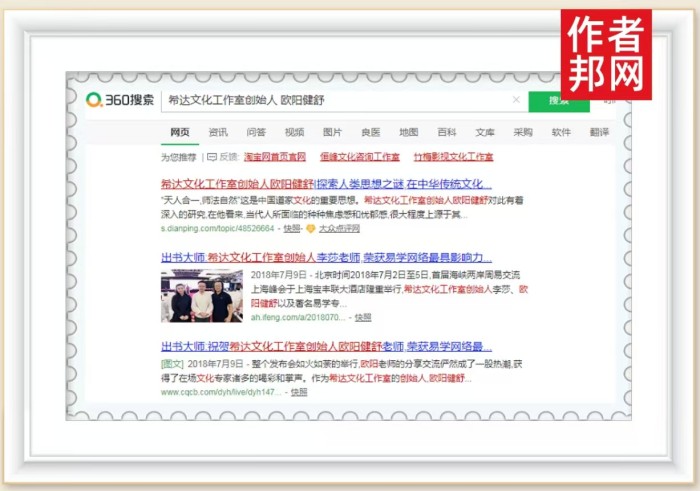 在这些众多的媒体中,具有较大含金量的莫过于全球闻名的中文搜索引擎360、搜狗、百度,如今可喜的是,欧阳健舒书作者关键词霸屏360、搜狗、百度三大平台、行业影响力再创新高。