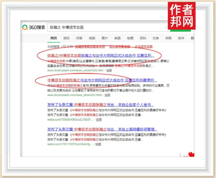 通过互联网平台高效、快捷的信息发布,以张瀚之先生为核心的关键词成功入驻360、搜狗、百度等权威平台,要想获得相关信息,只需在平台页面搜索“张瀚之”相关关键词,便能获取大量新闻与品牌内容,得益于互联网平台的高效推广,不仅提升了双方在资源优化方面的作用,而且更在个人品牌打造与信用资本积累的轨道上实现提速、增效,其行业影响力不断攀