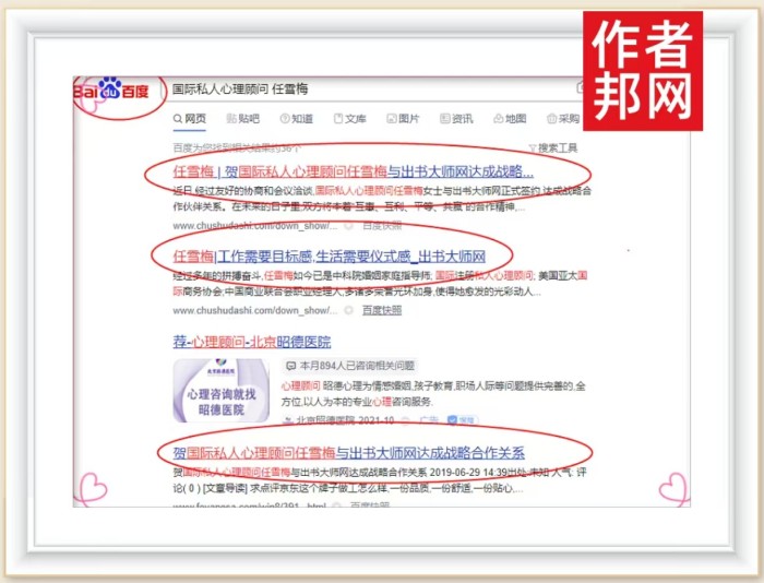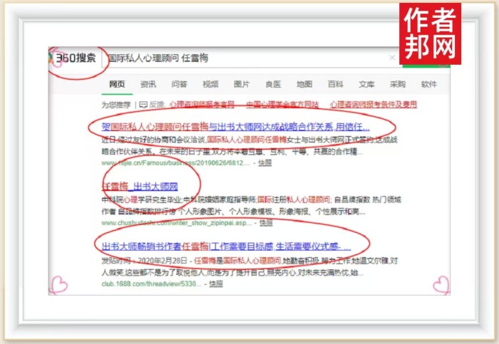 360、搜狗、百度三大搜索引擎,以庞大的数据库作为支撑,稳定的网页浏览为核心,不断积累内容信息和数据流量,并且会根据用户搜索记录,检索出相关信息进行推送,为用户的使用提供极大的便利。随着任雪梅女士品牌以及个人信息进入平台,搜索“任雪梅”相关内容,都会推送品牌信息,快速、便捷的完成流量推送。