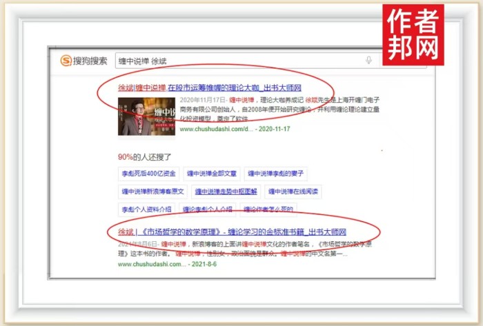 可喜的是,依托强大的行业影响力,近日上海开缠门电子商务有限公司创始人徐斌书作者营销网站被360、搜狗、百度平台收录,其个人内容和品牌信息成功进入大众视野,在平台搜索“徐斌”等相关关键词时,与之一起弹出的还有其著作、品牌简介和个人履历,这不仅推动了徐斌老师个人品牌的发展,同时也增强了徐斌老师的行业影响力。