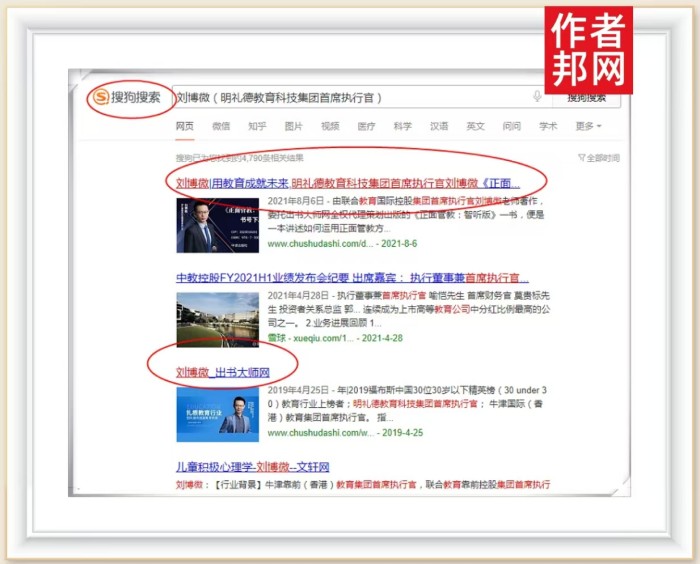 近日,明礼德教育科技集团首席执行官刘博微书作者关键词登顶360、搜狗、百度平台,带来了庞大的流量内容,粉丝读者只需在平台界面搜索“刘博微”相关关键词,便会跳转页面连接品牌信息,至此刘博微先生的行业知名度与品牌影响力广泛提升。