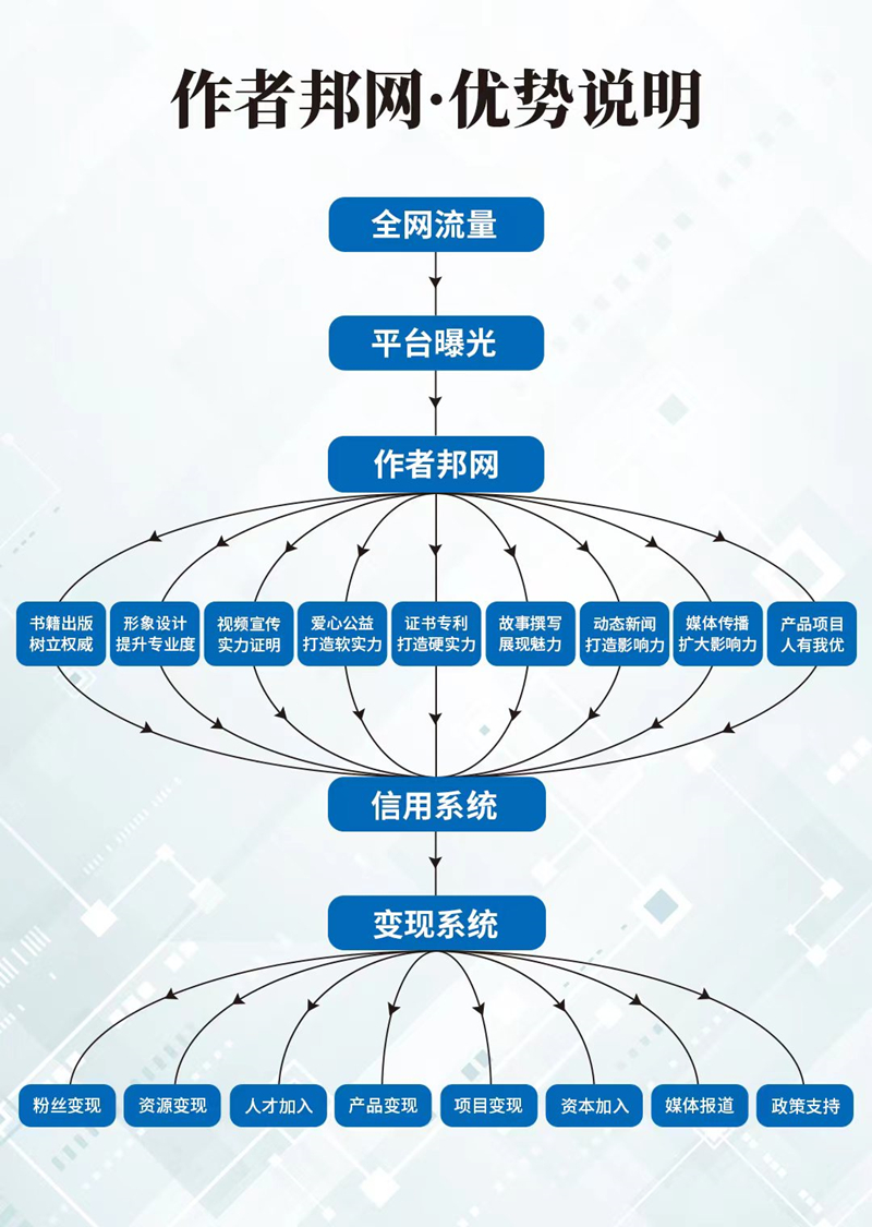 作者邦不仅可以赋予书作者及其作品九大赋能上的优势帮助,更可以通过作者邦的这些赋能,让书作者收获八大层面的变现体系,为其自身的品牌增值和信用资本积累,实现商业价值上的大丰收。