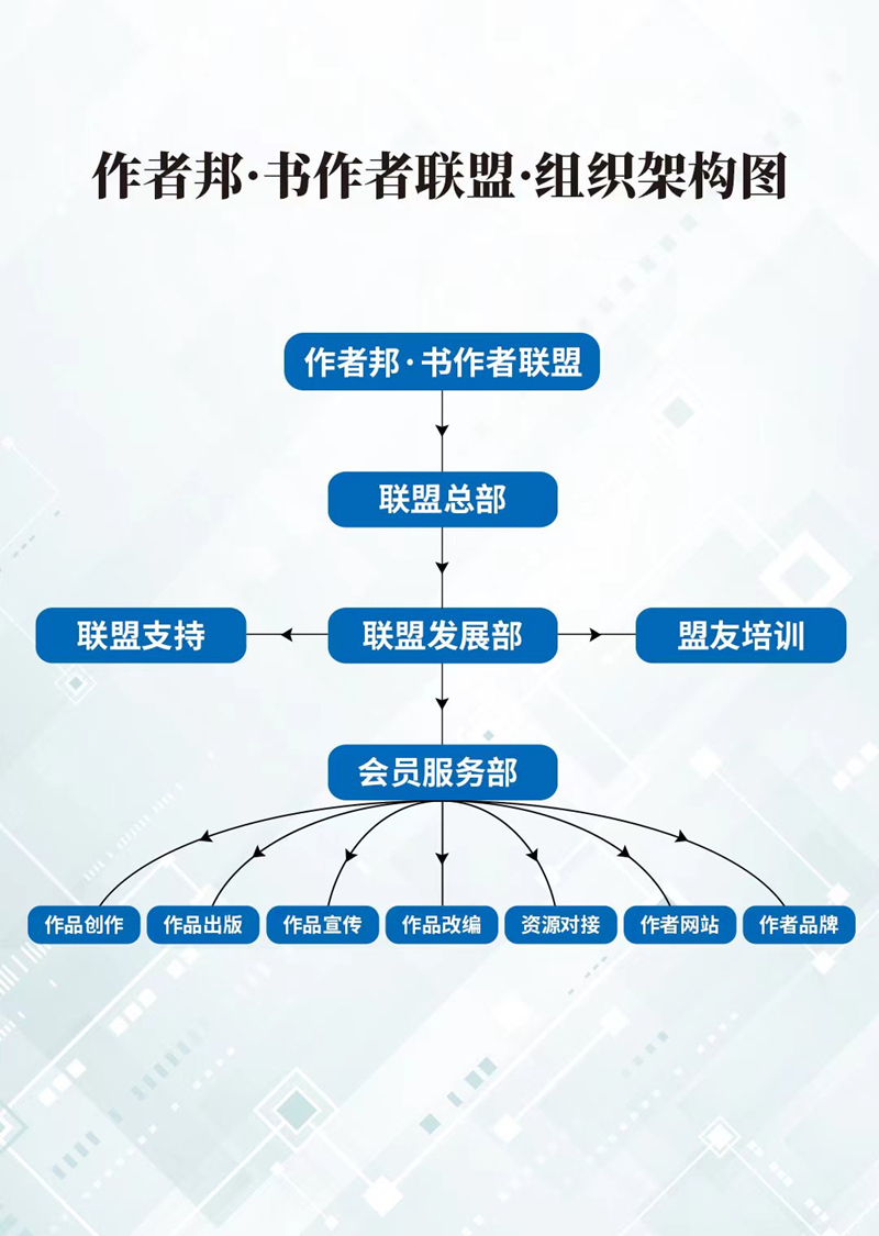 作者邦书作者联盟,有着自身经过了细化与优化的组织架构,以帮扶广大联盟会员提升和塑造起大家的行业影响力,并为会员的发展、进步和壮大,提供组织上的应有助力。
