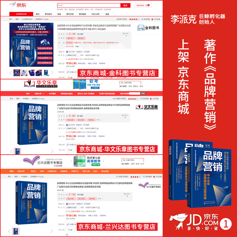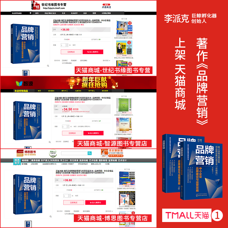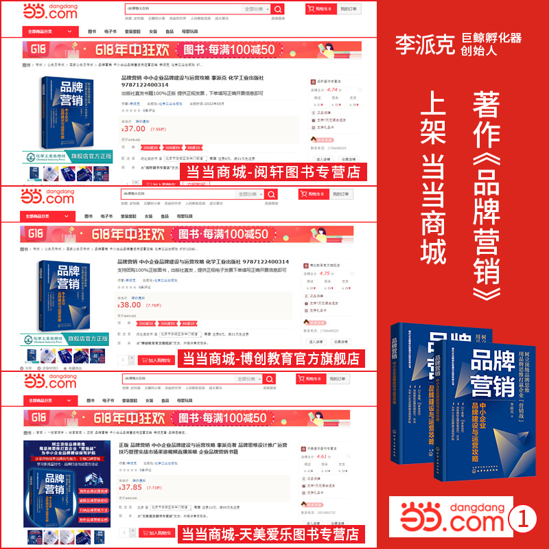 近日,由化学工业出版社出版、李派克创作的著作《品牌营销》,正式上架京东、当当以及天猫等销售平台,开启了书籍的火爆热销序幕。