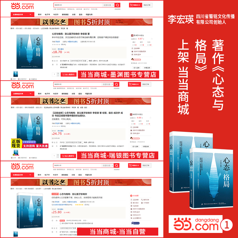 近日,由中国纺织出版社出版、李宏瑛老师编著的著作《心态与格局:别让面子影响你》正式全渠道上架,开启火爆热销序幕。广大读者朋友,可以通过相关渠道进行购买阅读。