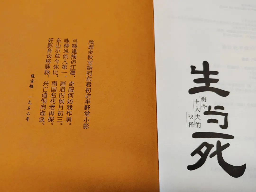 其次,柳如是与明清之际士大夫生与死的抉择密切相关。从我个人的角度,我不太喜欢图书的腰封设计,我自己做书也极少用到腰封。《生与死》算是特例之一,我希望设计一个腰封,但我对腰封设计的要求和文字选取,与通常的图书的腰封有天壤之别,不是惯常的宣传性话语,如众多知名学者一致推荐等文字。