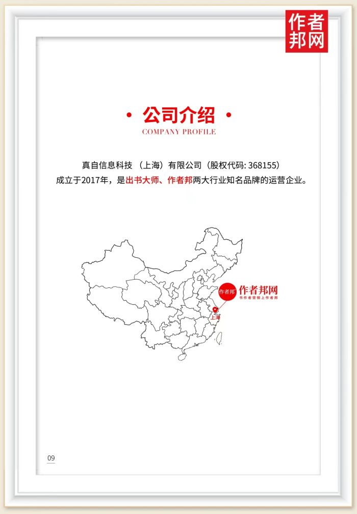 真自信息科技(上海)有限公司(股权代码:368155)。成立于2017年,是出书大师、作者邦两大行业知名品牌的运营企业。