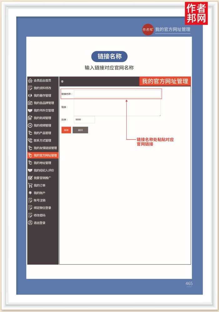 作者邦 | 书作者网站后台操作与详解——填写官方网址链接名称(连载九十四)