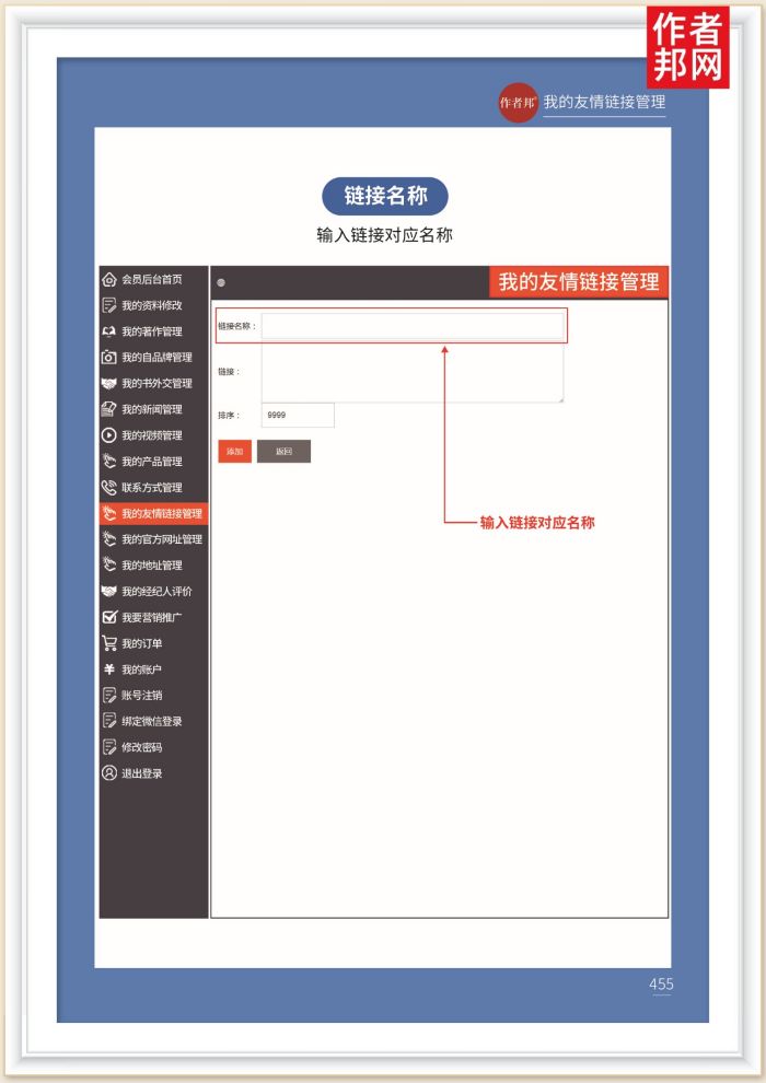 作者邦 | 书作者网站后台操作与详解——添加友情链接名称(连载九十一)