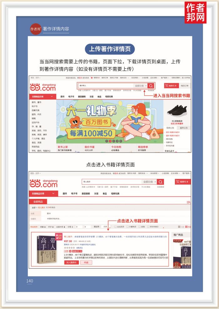 当当网搜索需要上传的书籍,页面下拉,下载产品详情页长图到桌面,上传到作者后台著作详情内容框中