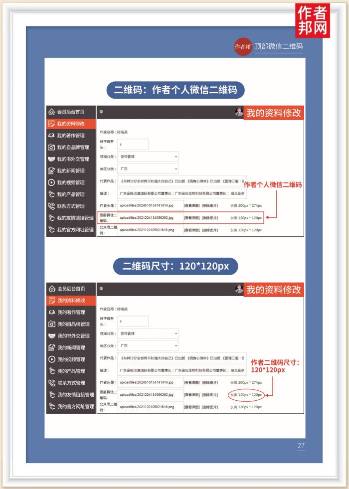 作者邦 | 书作者网站后台操作与详解——顶部微信二维码(连载八)