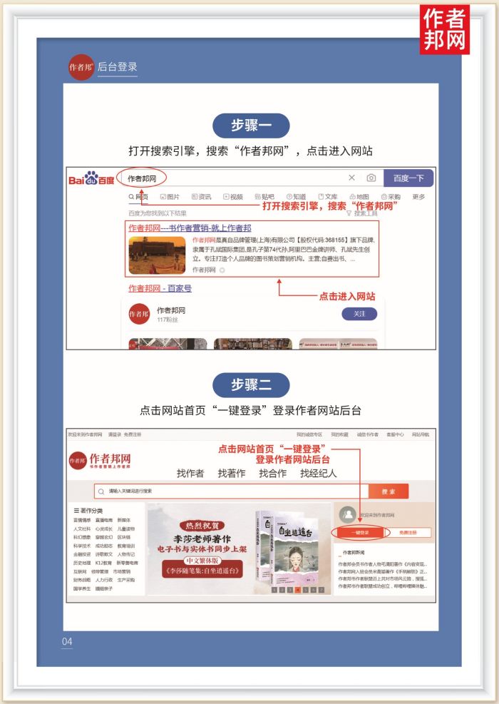 步骤一:打开搜索引擎,搜索“作者邦网”,点击进入网站