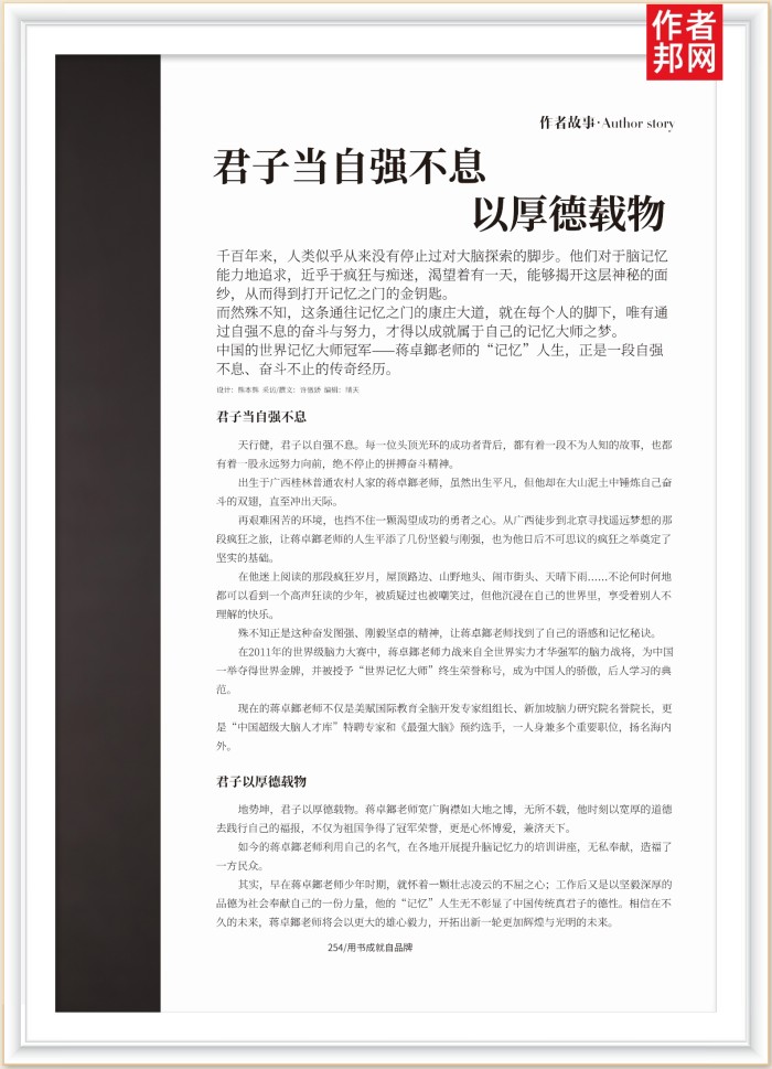 中国的世界记忆大师冠军蒋卓解老师的“记忆”人生,正是一段自强不息、奋斗不止的传奇经历。