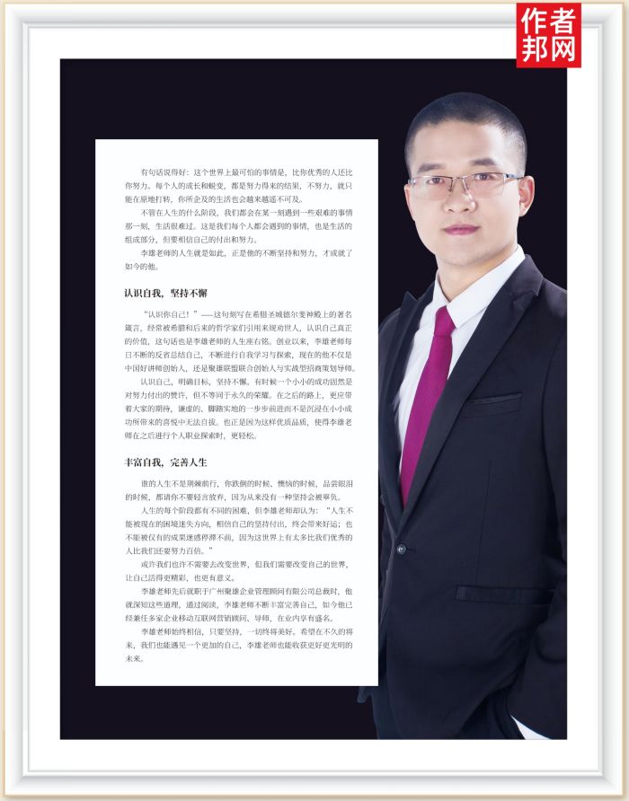 李雄老师先后就职于广州聚雄企业管理顾间有限公司总裁时,他就深知这些道理,通过阅读,李雄老师不断丰富完善自己,如今他已经兼任多家企业移动互联网营销顾问、导师,在业内享有盛名。