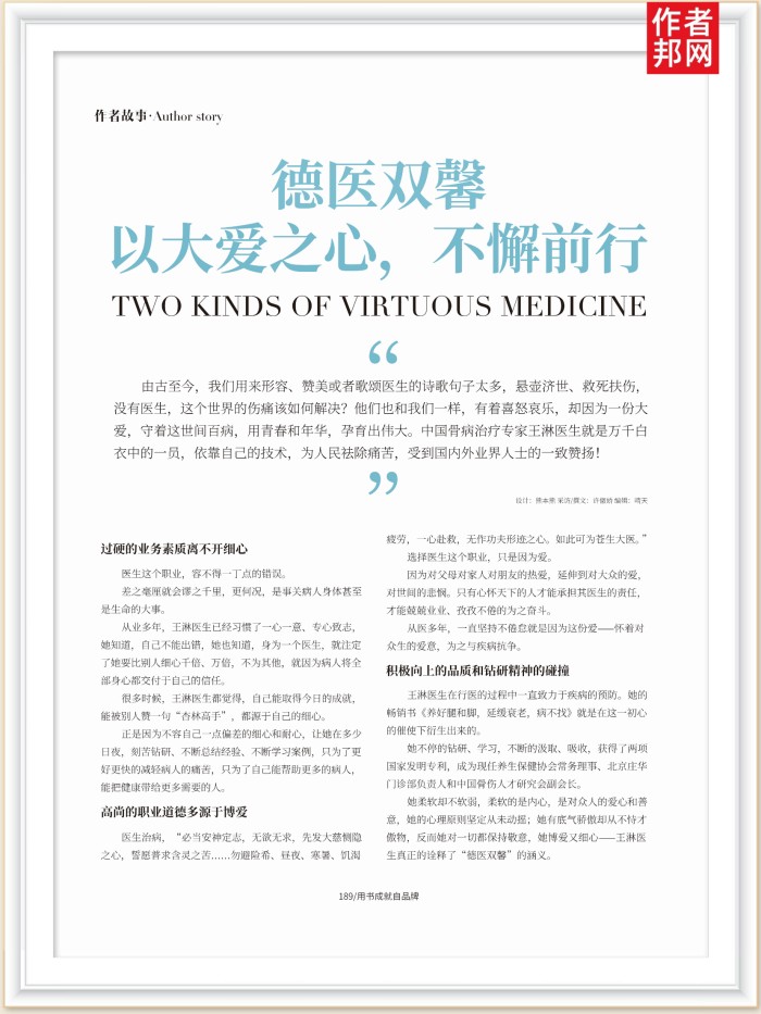 由古至今,我们用来形容、赞美或者歌颂医生的诗歌句子太多,悬壶济世、救死扶伤,没有医生,这个世界的伤痛该如何解决?他们也和我们一样,有着喜怒哀乐,却因为一份大爱,守着这世间百病,用青春和年华,孕育出伟大。中国骨病治疗专家王淋医生就是万千白衣中的一员,依靠自己的技术,为人民祛除痛苦,受到国内外业界人士的一致赞扬!