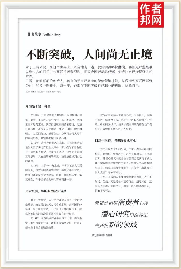 成为品牌创始人也许是必然,但是自此,从事中医药,仿佛为王誉霏之后对于中医的兴趣铺下了号角。中间的2015年,她再次成立深圳花瓣互动广告公司,做她真正擅长的广告行业。