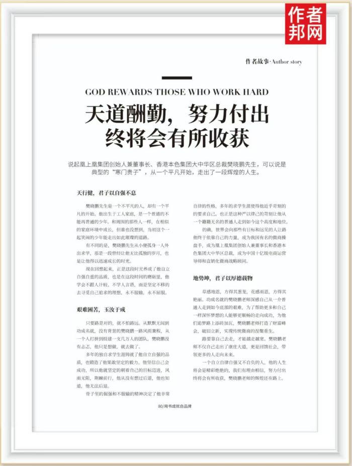 说起凰上凰集团创始人兼董事长、香港本色集团大中华区总裁樊晓鹏先生,可以说是