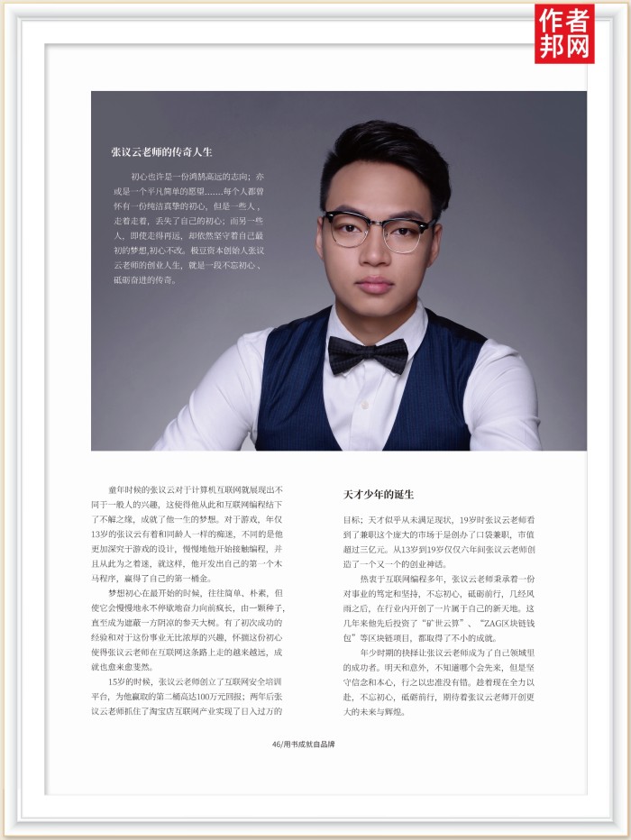 15岁的时候,张议云老师创立了互联网安全培训平台,为他赢取的第二桶高达100万元回报;两年后张议云老师抓住了淘宝店互联网产业实现了日入过万的目标;